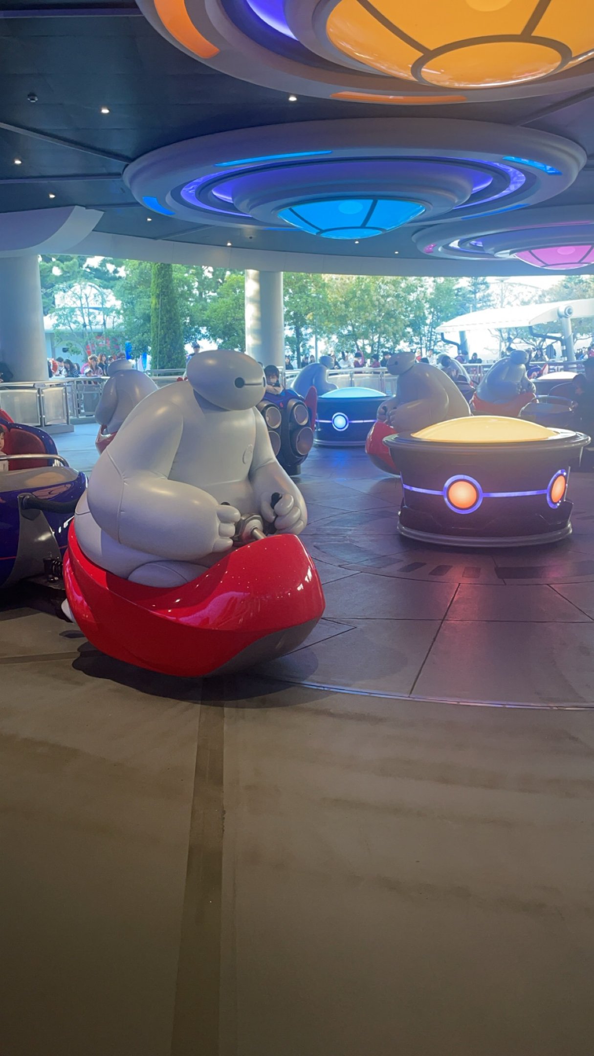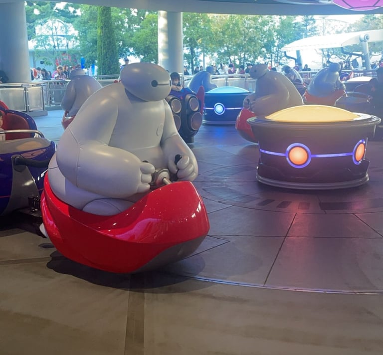 Another fun attraction is the Baymax ride, where Baymax pulls you along while upbeat music plays throughout the experience. Baymax is an extremely popular character in Japan, and this ride has a dedicated fan base—many guests even gather around the attraction just to sing and dance along to the music. Each song has its own set of choreographed dance moves, so by the time you board the ride after waiting in line, you’ll likely already know them. Fair warning: the songs may get stuck in your head for the rest of the day. Music aside, this is a fun, lighthearted ride that I recommend if you get the chance.
