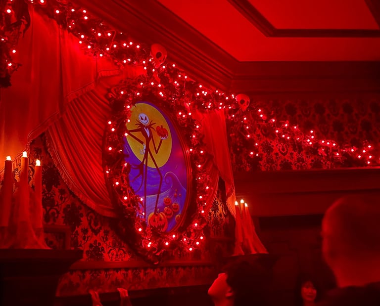 The Haunted Mansion at Tokyo Disney is similar to the version at Disneyland in California. However, since I visited in November, the ride was transformed into The Nightmare Before Christmas overlay, which typically runs from September through January. Jack Skellington and Zero make appearances, along with many other characters from the film. My favorite moment was seeing the Vampire Teddy playing the piano for Sally. Overall, you can still expect the same thrilling haunts and spooky fun on this classic attraction.