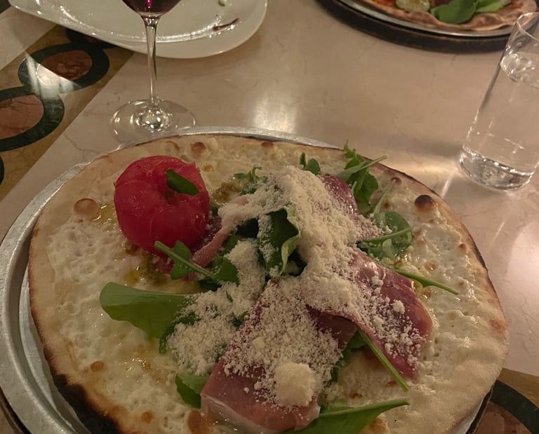 Another standout dining experience can be found in the Mediterranean Harbor area of DisneySea, where you’ll feel as though you’re dining along the canals of Venice. Italian food is served here, with menu options including wood-fired pizza, pasta, and a variety of wine and beer. The pizza was superb and exactly what we needed after a long day in the park. We were also able to sit outside on the patio and enjoy the rustic Italian architecture, which enhanced the experience.