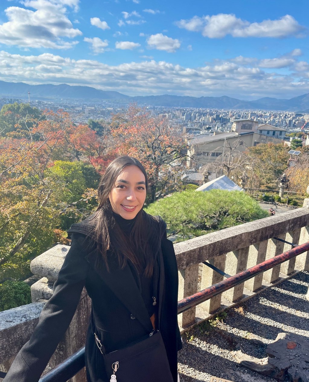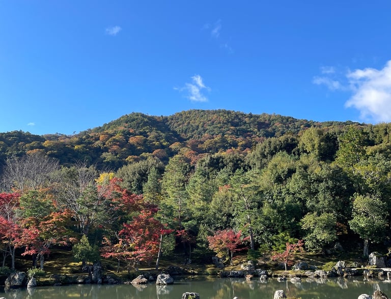 Kiyomizu-Dera, meaning "Pure Water Monastery", is a Buddhist Temple that sits high above Kyoto city. We came here during the middle of the day, so the sky was deep blue, and it was clear enough to see the neighboring mountains. The surrounding trees were also starting to change into fall colors. The structures in the temple itself are breathtaking, but I found the views to be just as beautiful. I recommend heading to this location early since there were a ton of people trying to get the same photos. Aside from the crowds, this spot is absolutely worth a visit for the perfect scenery.