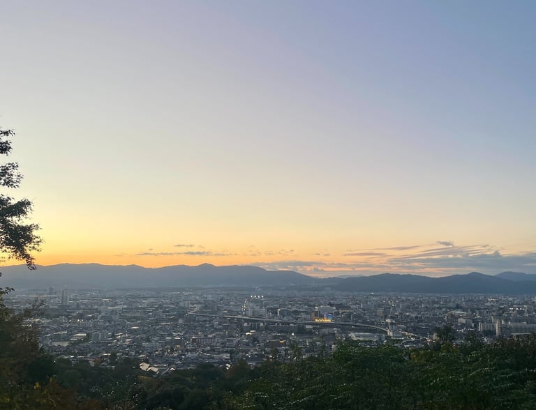 Fushimi Inari-Taisha is a Shinto shrine that is best known for its 10,000 gates that snake up the mountainside. The grounds consist of scenic trails, and the total distance of the trails is estimated to be around one and a half to three miles long depending on the route taken. If you hike halfway up the mountainside, you can reach the Yotsutsuji intersection, which has a large clearing to view Kyoto city and the neighboring mountains. It took us around 30-45 minutes to get to this point but know that the hike is fairly steep and requires walking on uneven stairs and dirt. I recommend bringing some water to drink along the way to stay hydrated and wearing some comfortable shoes. I go into more detail about the shrine in this blog post, but the views alone certainly deserve their own spotlight.