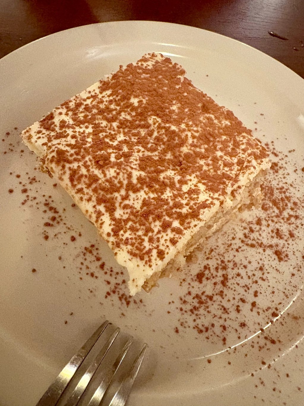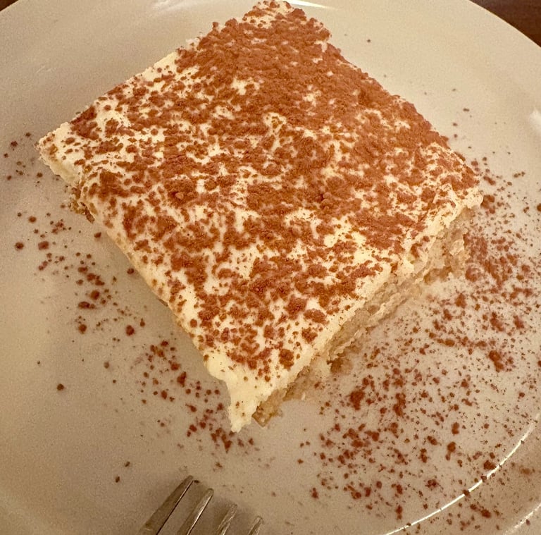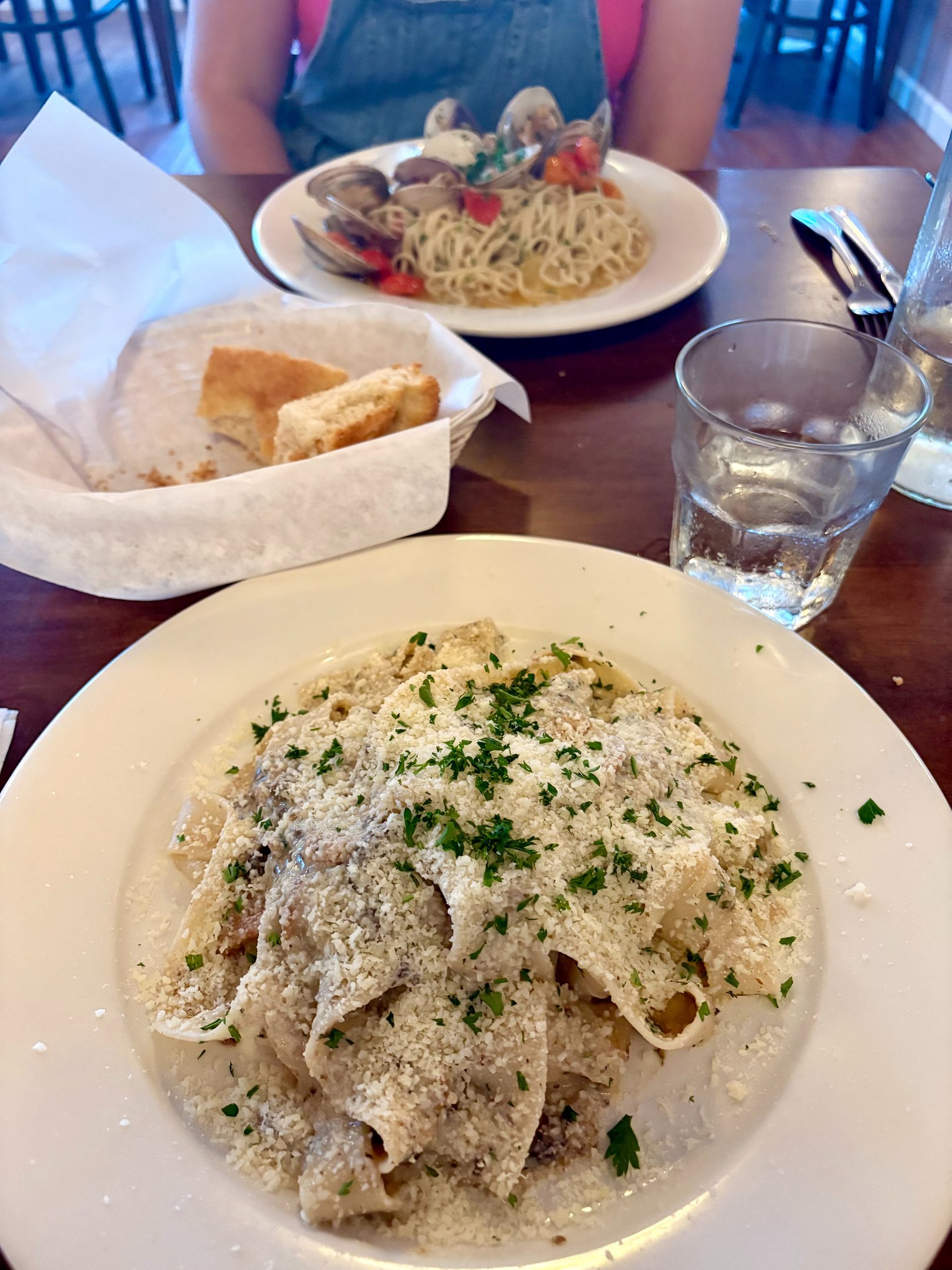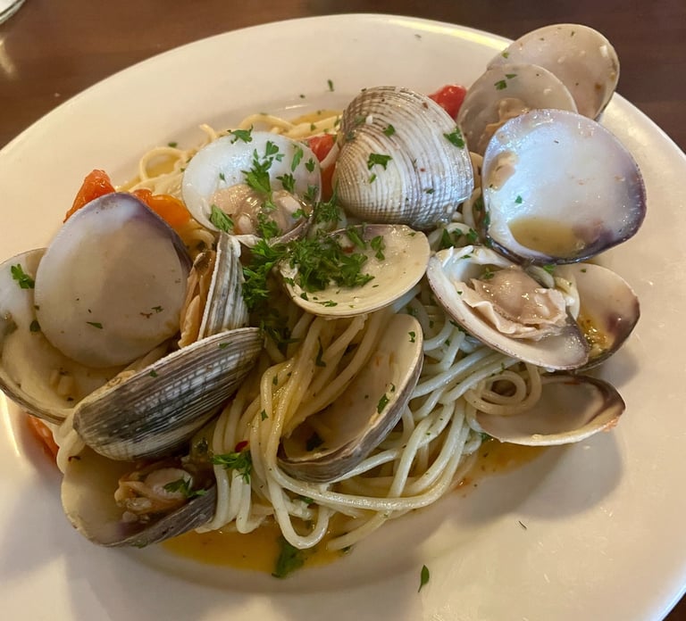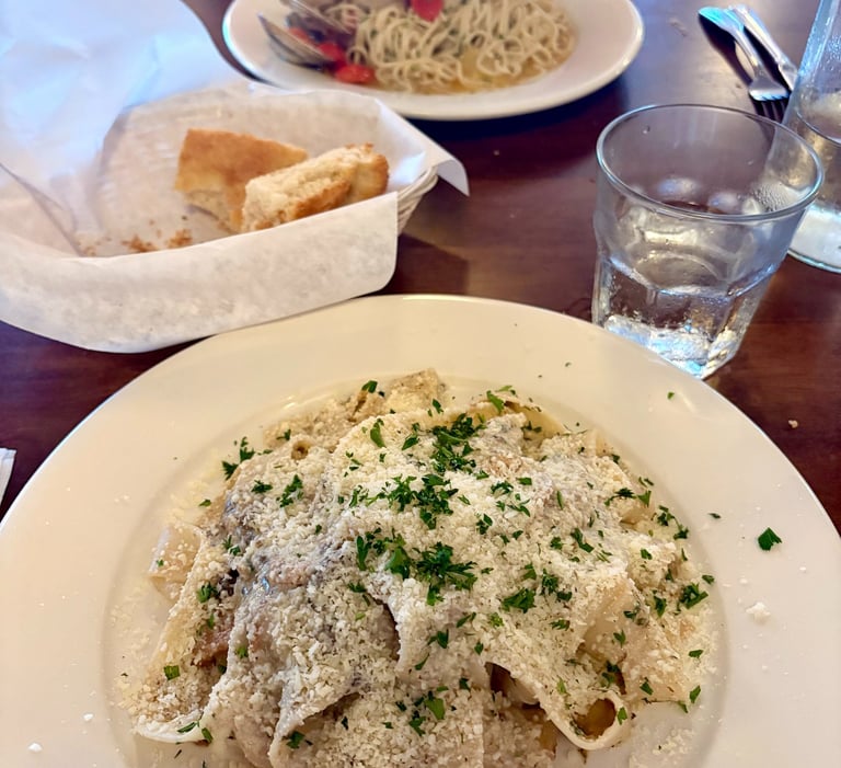 We had the spaghetti alle vongole, which was thin pasta served with clams, olive oil, and garlic. We also had the pappardelle ai funghi porcini, which featured thick pasta noodles and fresh mushrooms covered in a creamy sauce. Both dishes were exquisite, and I ate everything on my plate despite being full. We couldn't leave without dessert, so we tried their homemade tiramisu, and I was in heaven. It was light and airy, with just the right amount of sweetness. I highly recommend this restaurant if you are in the area.