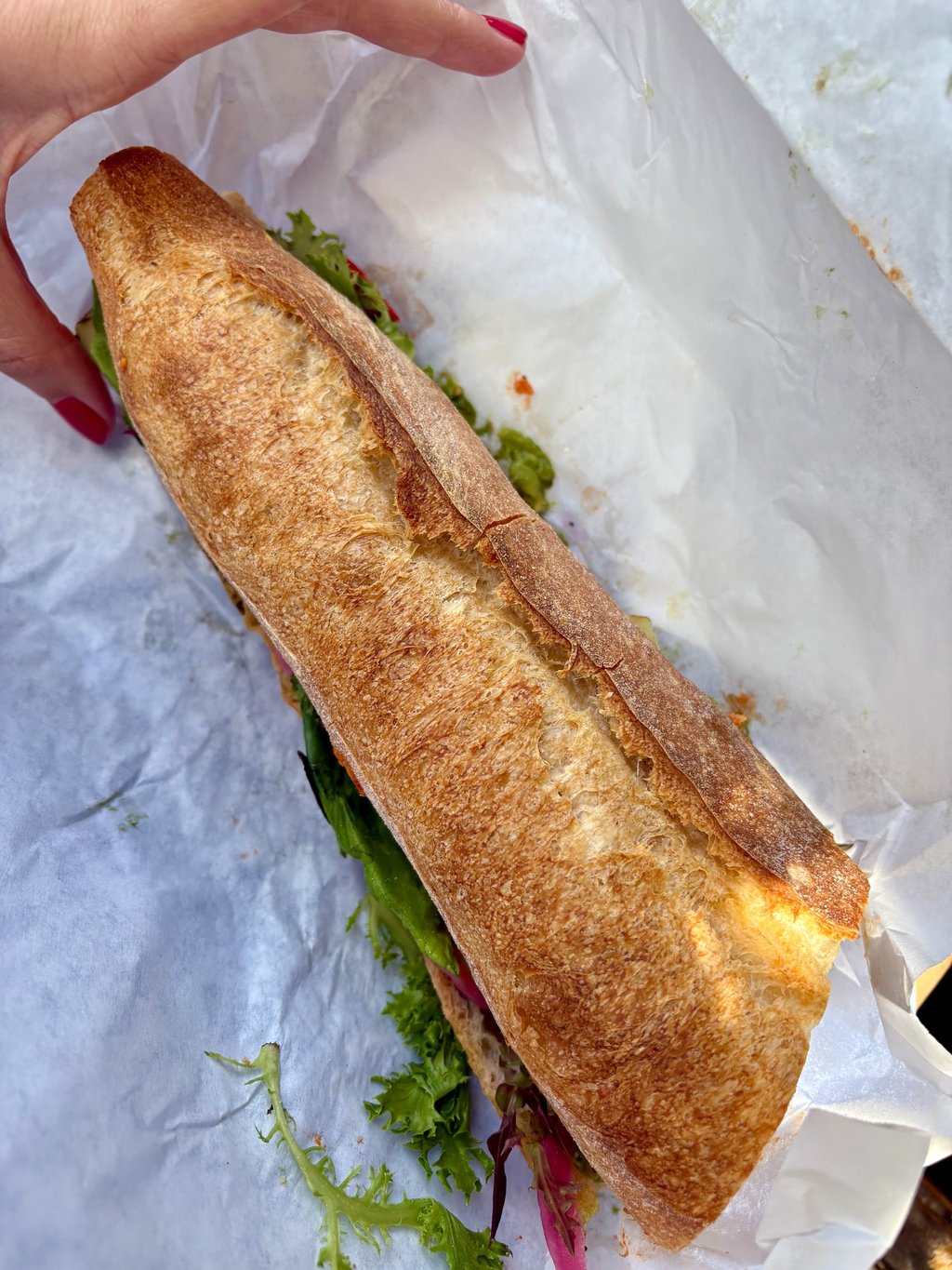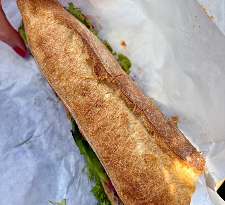 This place gets packed, and you will likely have to wait in line to place your order. If you come for lunch, there are typically only two different types of sandwiches available in the afternoon—one with meat or one that's vegetarian. Seating is limited, with only a long bench outside, but if you don't mind getting cozy with some strangers, this can add to the overall experience. However, the ocean is about a 5-minute walk away, so you could also snag a bench overlooking the beach.