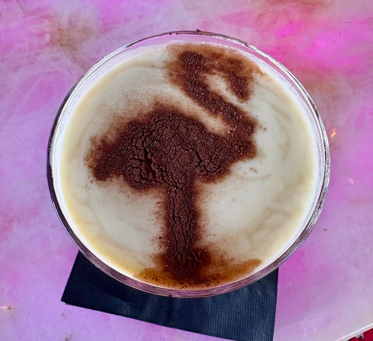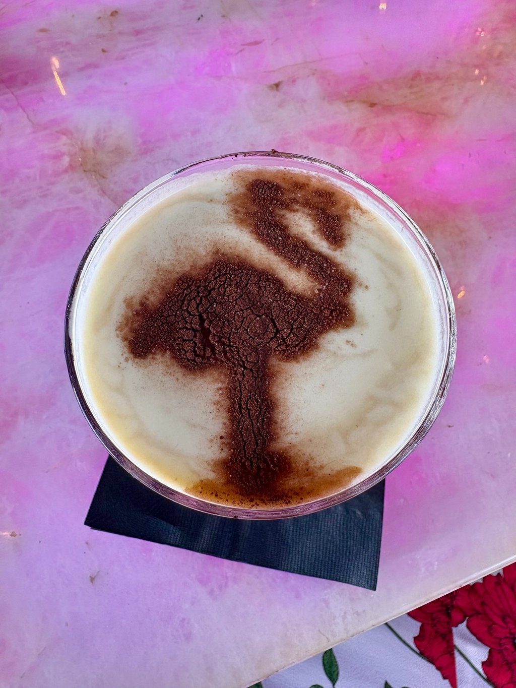 Despite the clubby vibes, this location has some of the best food and drinks around. When I say drinks, I mean the tiramisu martini, which is made with vodka, espresso, coffee liqueur, and tiramisu foam. The creamy, thick tiramisu foam makes the drink, and it is topped with a flamingo made from espresso powder. This is easily one of the best espresso martinis I have ever had.