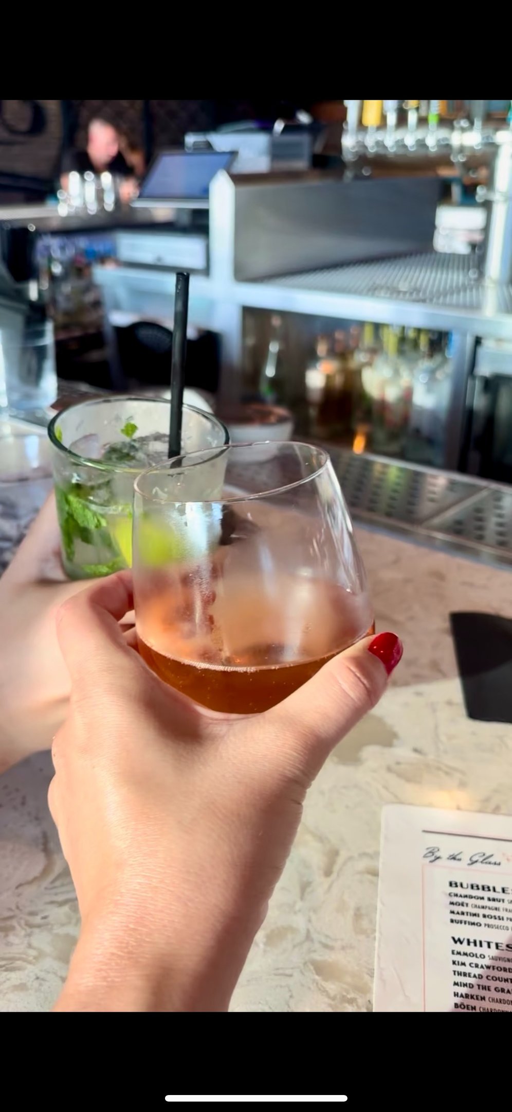 Due to the high prices, I recommend coming for happy hour from 4–5 p.m. daily. While it is a short amount of time, the menu has a decent number of options for both food and drinks. We were able to get seats at the bar without a reservation, but the restaurant did get busier as the night went on.