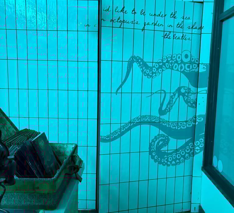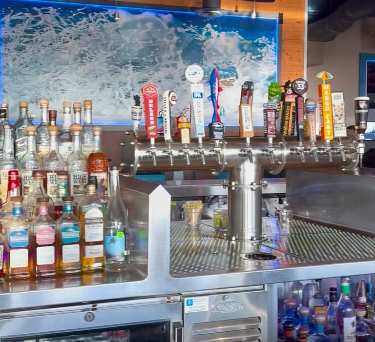 Waterbar is exactly how it sounds. The entire restaurant has a water theme, and large windows frame beautiful ocean views. The décor includes paintings of mermaids and divers, and there are large photos capturing waves and bubbles in the sea. I enjoy visiting this location in Pacific Beach mostly because of the ambiance, but they also serve great drinks and food. Their menu includes beer, wine, and cocktails, with my personal favorite being the frozen watermelon margarita, which is slightly sweet and refreshing on hot days. They also have savory seafood dishes like creamy crab Rangoon dip (my sister's favorite), buttery lobster rolls, and crispy fish tacos.