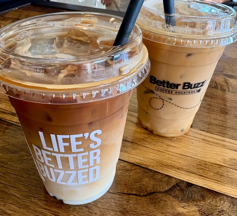 Better Buzz is a coffee chain in Southern California that is mostly situated in the San Diego area. It is certified by the California Certified Organic Farmers (CCOF) as an organic coffee roaster and strives to source Fair Trade and Rainforest Alliance coffees. I'm no coffee expert, but I find their coffee to be delicious, and they even have a signature vegan vanilla creamer used in some of their specialty drinks.