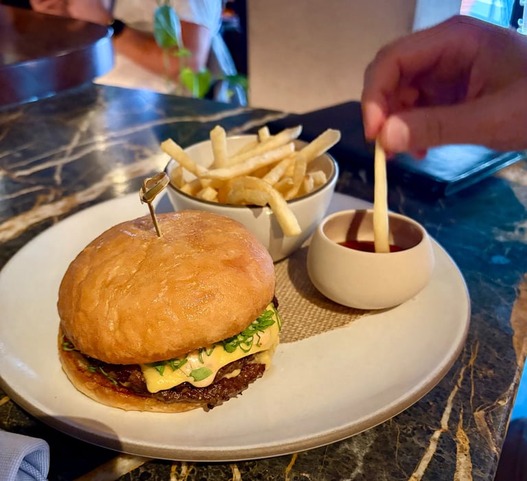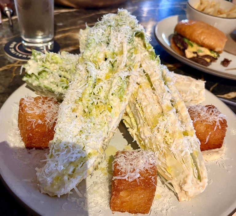 The food is prepared elegantly and made with top-quality ingredients. To this day, I still dream about the Caesar "Twinkie" salad, which comes with fresh romaine spears, creamy dressing, grated Parmesan, and fried croutons. While there are no Twinkies in the dish, it is definitely one of the best takes on a Caesar salad I have ever had. We also enjoyed a braised short rib bao bun and a juicy cheeseburger made with pickled red onion and harissa aioli.