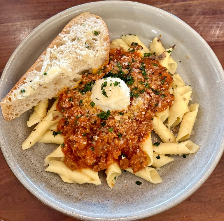 Along with fun cocktails, Italian food is served, including pasta that is made daily in-house. I tried the Bolognese, which came with chewy pappardelle pasta and a rich, savory meat sauce. This was perfect for soaking up all the alcohol from the delicious martinis. Homemade pizza and focaccia are other items on the menu that are worth checking out.