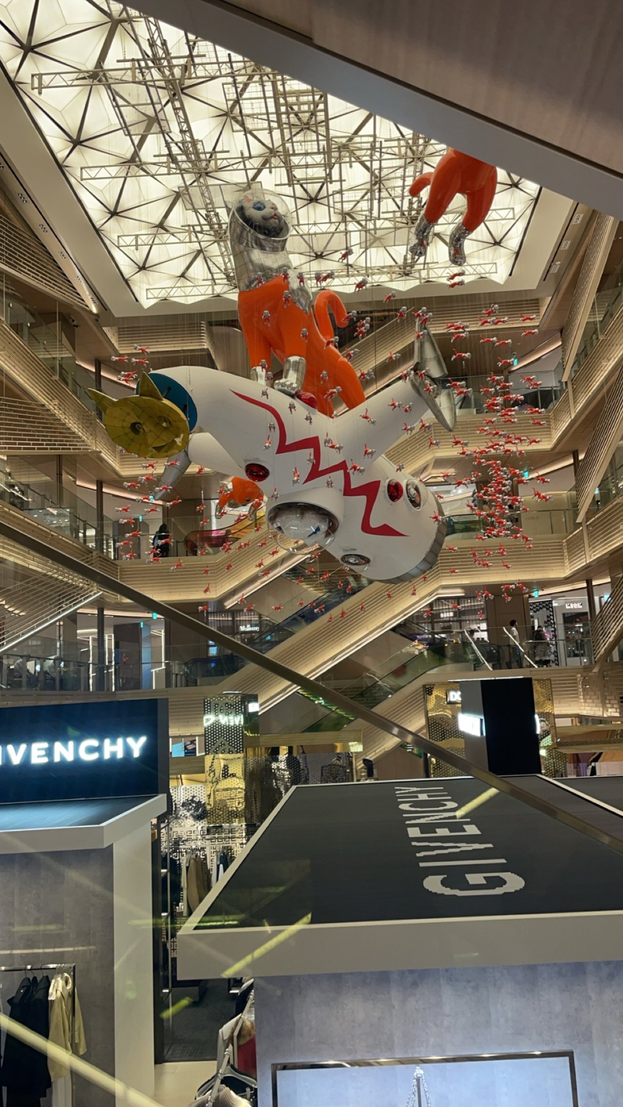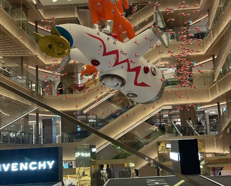 Ginza 6 is a swanky mall that houses numerous luxury designer stores. There are various statues and artwork sprinkled throughout the premises with the main character being an orange space cat. Along with shopping, this spot has a fun rooftop garden that you can peruse to get away from the bustling city. We visited the garden at night when there were less people, and we were able to get a great view of Ginza. There are also premium restaurants and a food hall within the building, along with one of my favorite stores featured below: Tsutaya Books.