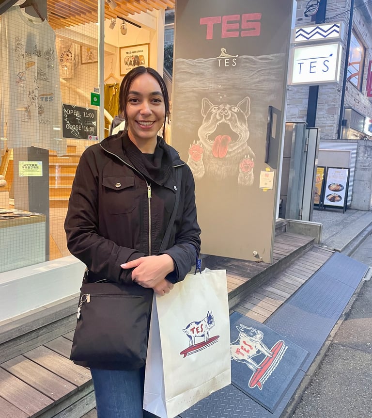 TES is hands down my favorite store in Japan because I love their merchandise. I own two French bulldogs myself, and this store centers around the dog breed. They have clothing, bags, and accessories that all have fun Frenchie artwork and references to California. This store is located in Shibuya, and the associates working there were extremely nice and so happy we came in. They are always bringing out new items, so I like to follow them on Instagram to see what is up and coming. Even though I wanted to buy everything, the pricing is more expensive, so I would keep this in mind. However, I think it is totally worth it, and the quality is super high. If you have a thing for Frenchies or are just looking for some unique clothing in Japan, then visit TES!